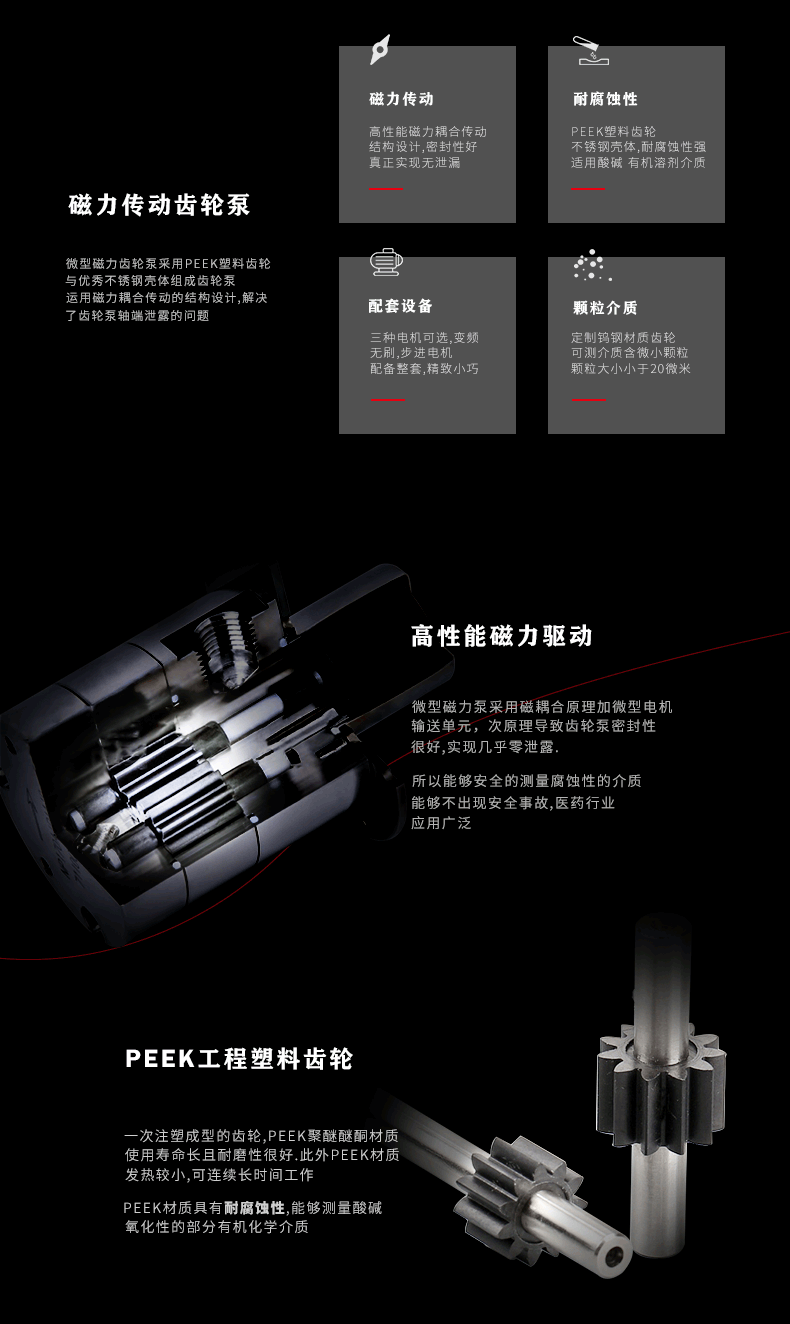CX-MP系列微型齒輪泵是特種加強型PEEK材料制作的齒輪和軸承,高精度的陶瓷軸,一次注塑成型的齒輪; 產(chǎn)品具有超高的使用壽命和耐磨型,是輸送小流量,高壓,無脈動的腐蝕性液體、磨損性液體、高溫液體時的理想選擇。